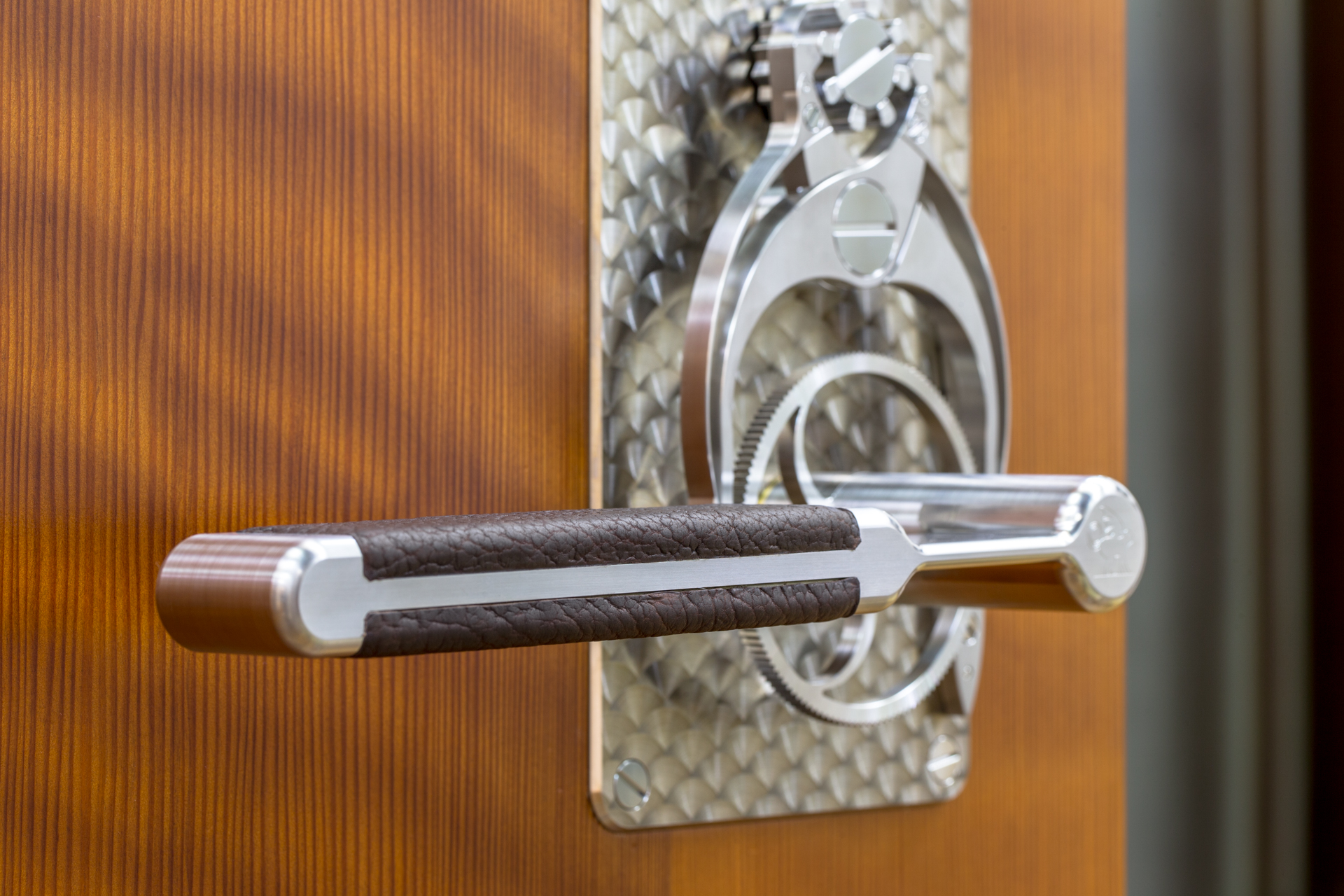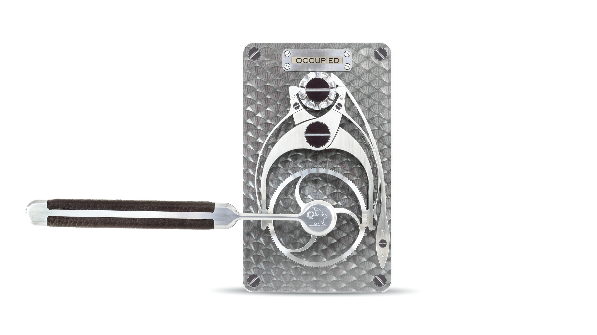 The Rattrapante passage lock is based on designs and uses finishes borrowed from classical horology. These details are scaled up by approximately 8 times in order to produce a “super scale” version of the mechanisms.