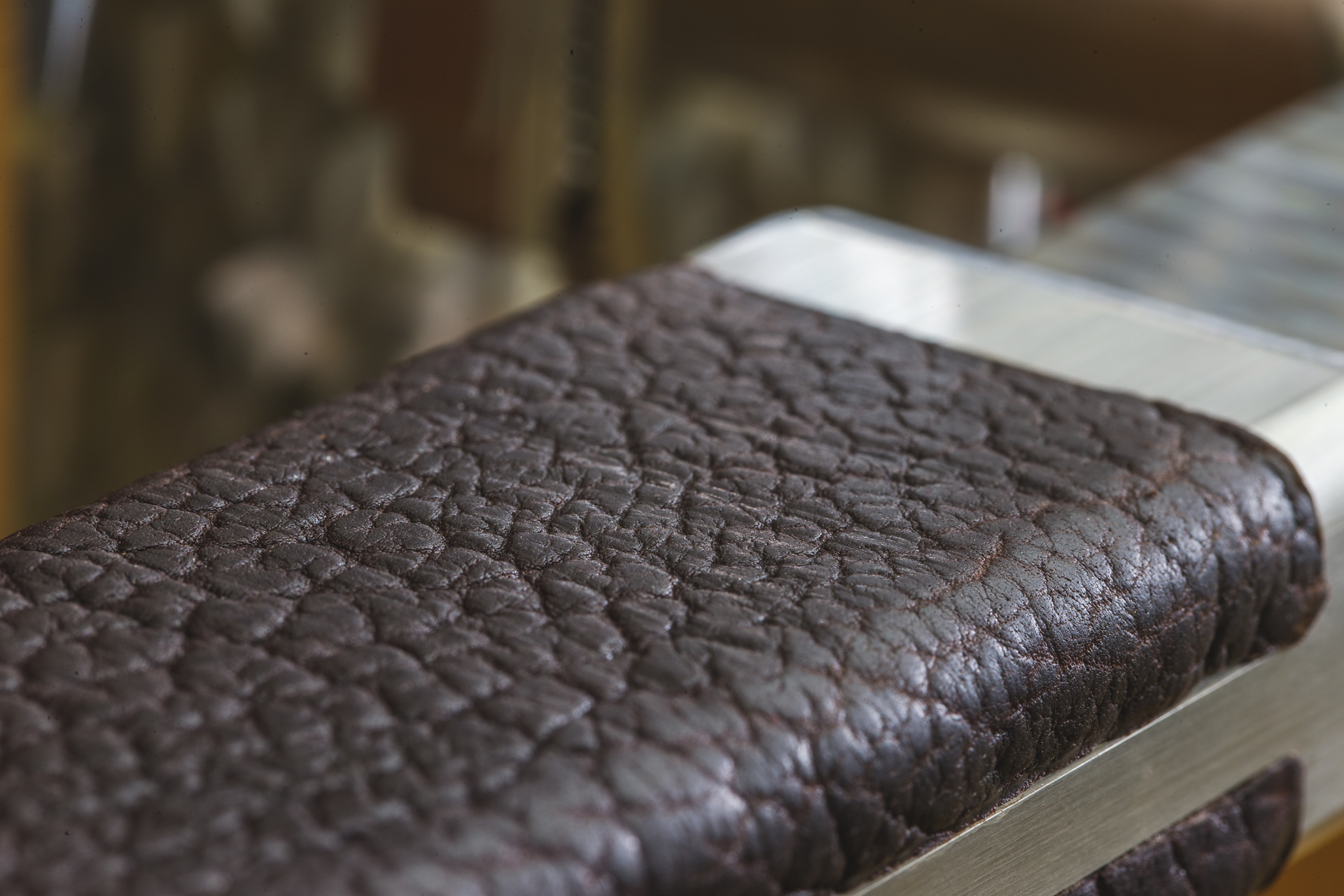Materials used in the assembly include 4 different stainless steel alloys (depending on functional requirements), Brass and Bison or Crocodile hide.